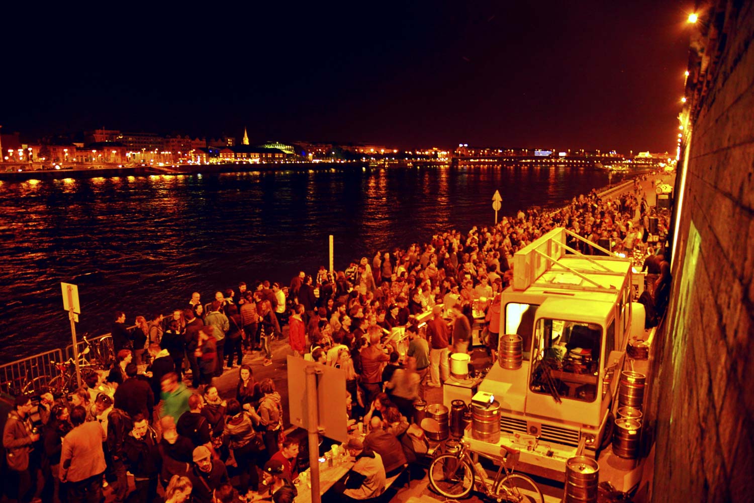A Valyo missziójához híven a Dunához legközelebbi helyszínen, szinte a Szabadság híd alatt az alsó rakparton szervezett eseményeket. Kiraktuk a köztéri bútorainkat, a Valyo Buszt, amiből kis vendéglátóhelyet üzemeltettünk, volt mozizás, koncertek és éjszakába nyúló táncolás. Kacsakődobó Bajnokságot is szerveztünk kétszer, speciálisan erre az alkalomra kialakított dobó stéggel, a lépcsős rakpart pedig adta magát mint ideális lelátó.