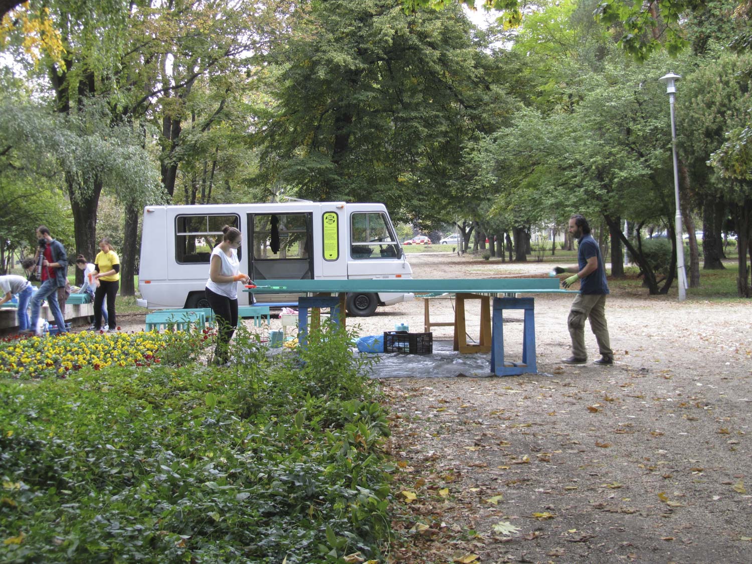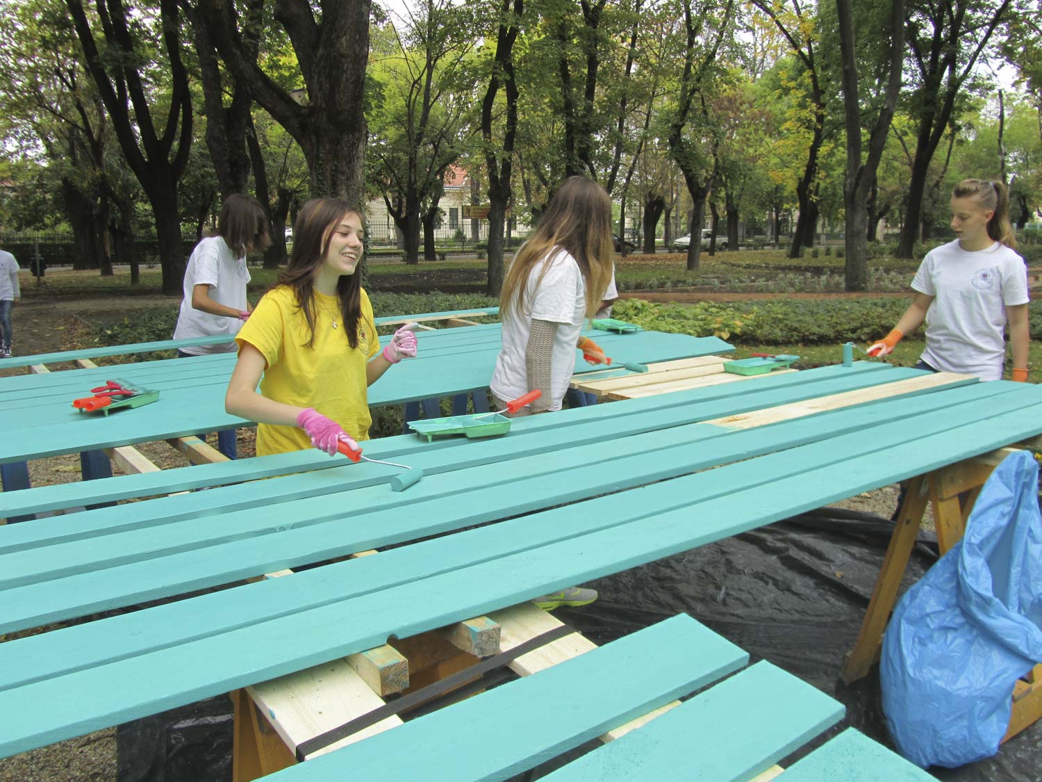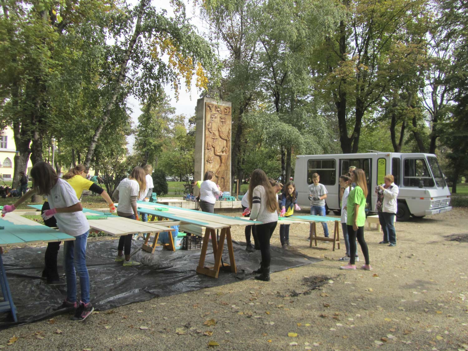 A projekt részeként a téren található Sztehlo Gábor Evangélikus Gimnázium diákjaival és tanáraival összefogva közösségi fűszerkeret és madárodúkat építettünk a gimnázium előtt található parkba. A fűszerkert workshop első hetében bejártuk a helyszínt és a lehetséges funkciókat, kialakítási lehetőségeket beszéltük át. A munka második fázisa a megvalósítás volt. Itt a Valyo Busz segítségével egy köztéri műhelyt alakítottunk ki, ahol a diákok az előkészített elemekből madárodúkat építettek és kialakították a fűszerkert elemit. Megépült egy többfunkciós bútor, amely asztalként, padként és szabadtéri órák megtartására alkalmas előadótérként is működik.