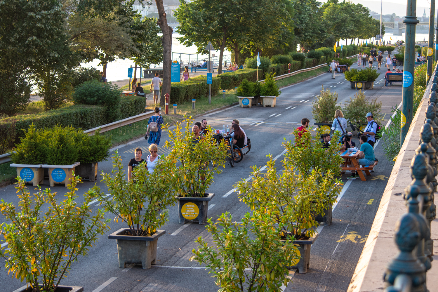 2021 június 18. és augusztus 15. között az aktuális építkezéseknek köszönhetően a gépjárműforgalomtól felszabadult Rakpartot szabadon használatba vette a város. Az Id. Antall József rakpart déli részén különböző urbanisztikai eszközökkel, illetve a városlakókkal közösen próbáltuk ki és mutattuk meg, hogy miként lehet máshogy használni egy betonba öntött közterületet, mint ahogy azt a hétköznapokban megszokhattuk. Növények, napozóágyak, tollaspálya, piknik asztalok – többek között ezt jelentette a Rakpart 2021-ben a Kossuth Lajos tér és a Lánchíd között. A nyár során a területen festettünk aszfaltot, kihelyeztünk különböző utcai bútorokat, virágládákat, valamint festett sportpályákat, 100 autónyi helyen pedig 100 növény, valamint bringatárolók kaptak helyet. A területen semmiféle kereskedelmi tevékenységet nem folytattunk, a rendezvények nem kerültek megrendezésre, a Rakpart 2021-ben igazi parkként funkcionált.