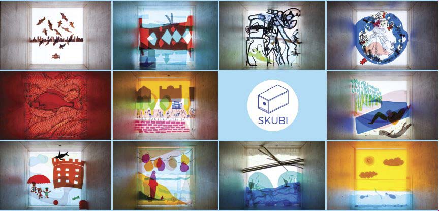 A SKUBI egy mini kiállítótér, a fából készült doboz egyik végén fényáteresztő üveg, a másikon kukucskáló nyílás van, belső térben pedig több rétegű felület, amire rajzok, képek kerülhetnek, több dimenziós látványt alakítva. Az első SKUBIk Dunás élményeket mutattak be, azóta más köztérhez kapcsolódó asszociáció is megjelent már bennük.